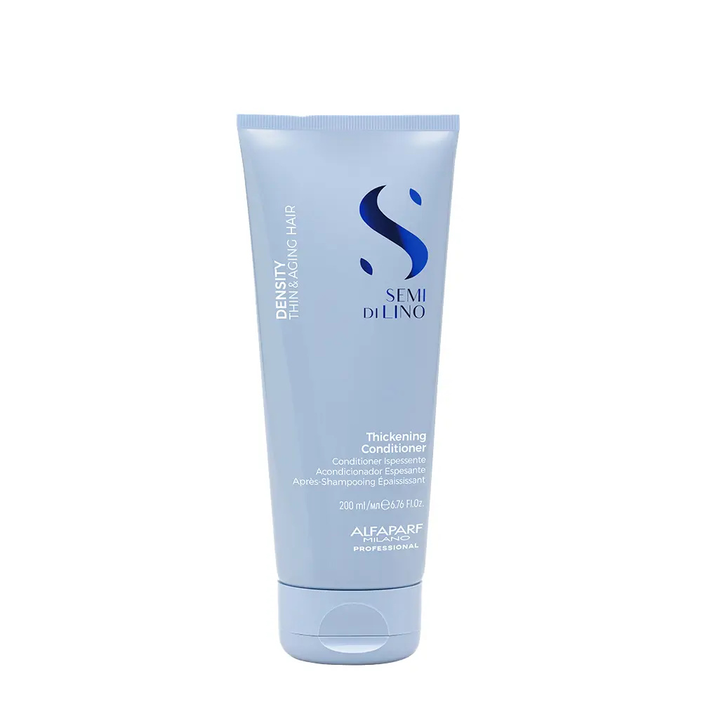 Semi di Lino Density – for fine and aging hair. This thickening conditioner detangles and nourishes, adding volume and softness to your hair. It restores thickness and vitality, giving your hair a youthful and healthy appearance. Vegan formula.