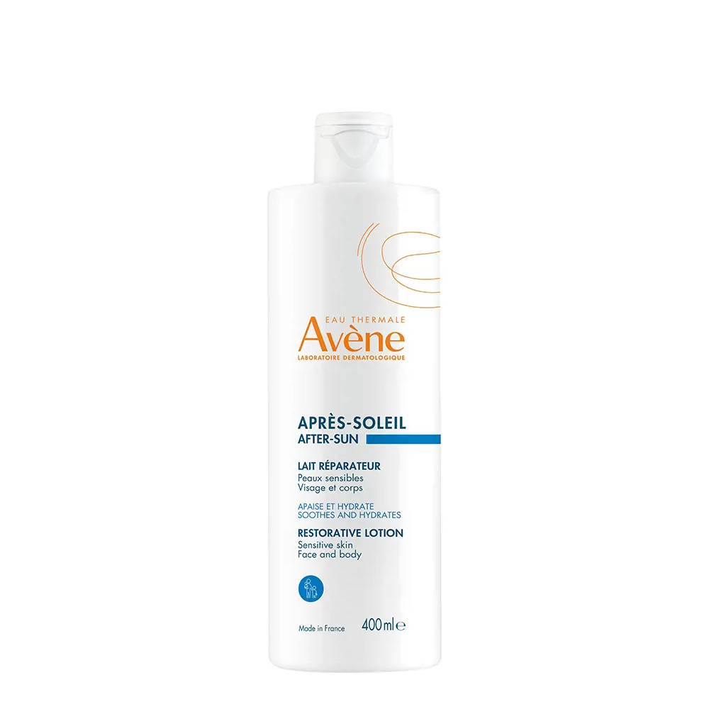 Avène’s AFTER-SUN restorative lotion is designed to rejuvenate the skin after sun exposure.