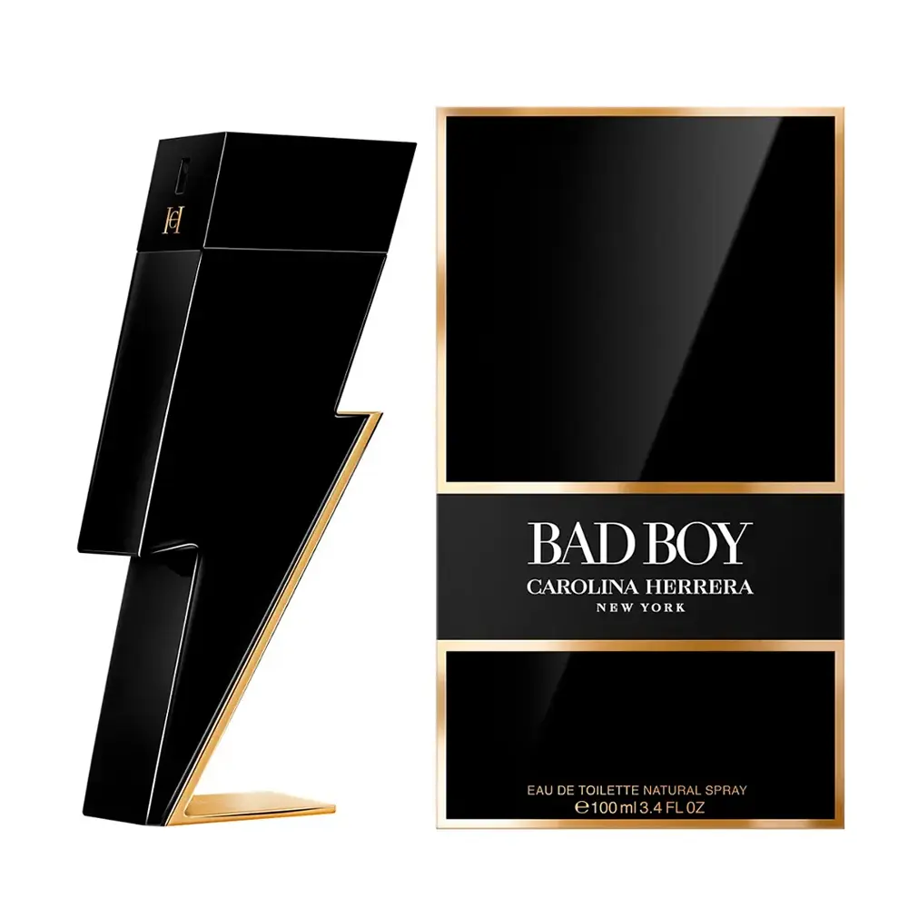 Presented in an iconic lightning-bolt shaped bottle, CAROLINA HERRERA BAD BOY embodies power and individuality. The striking black and gold design is both edgy and sophisticated, making a bold statement on any dresser or shelf.