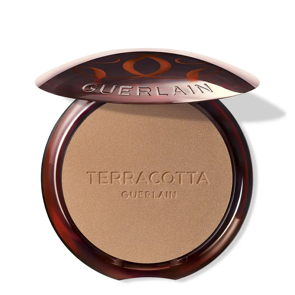 A GOLDEN COMPLEXION IN A NATURAL-ORIGIN FORMULA The legendary Terracotta bronzing powder flawlessly reproduces a natural, unmatched tan with a simple and immediate application. With 96% natural-origin ingredients¹, including mineral pigments and pearls, its texture perfectly adapts to the skin for a perfecting “healthy glow” effect. Infused with a touch of natural Moroccan Argan oil, known for its nourishing properties, the formula preserves skin hydration for long-lasting comfort.