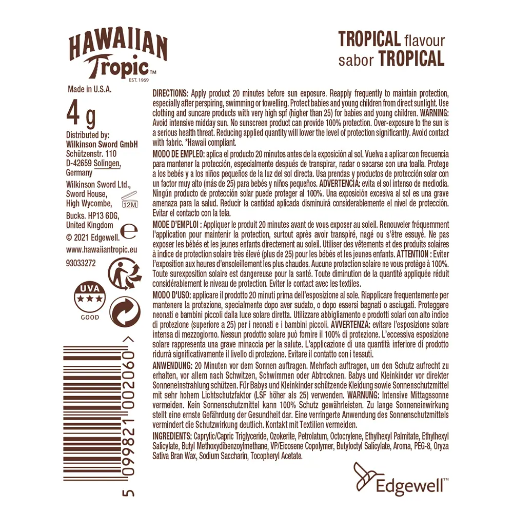 HAWAIIAN TROPIC LIP BALM sun protection stick SPF30 4 gr